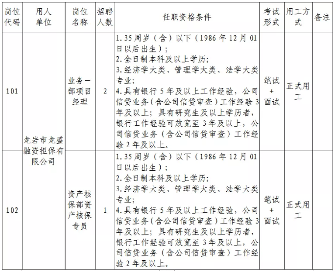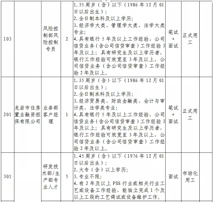 (1)正式用工岗位:代码为101、102、103、201岗位