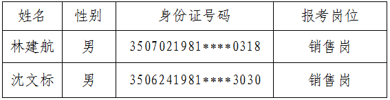 拟录用人员名单