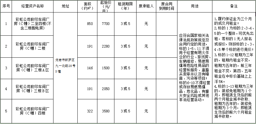 委托龙岩市产权交易中心有限公司在权益云交易平台公开竞价招租如下资产,若在公告期内未征集到竞租人,公告期限以每五个工作日为一个周期顺延,直至征集到意向竞租人摘牌或另行公告止。若有意向请点击下方链接跳转龙岩市产权交易中心有限公司网报名。