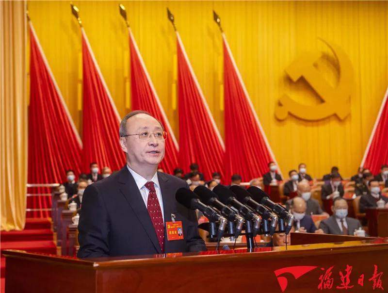 尹力代表中共福建省第十届委员会向大会作了题为《高举旗帜牢记嘱托,勇担使命砥砺前行,奋力谱写全面建设社会主义现代化国家福建篇章》的报告。大会的主题是:高举习近平新时代中国特色社会主义思想伟大旗帜,深入贯彻落实习近平总书记对福建工作的重要讲话重要指示精神,从党的百年奋斗历程中汲取智慧和力量,立足新发展阶段,贯彻新发展理念,持续建设机制活、产业优、百姓富、生态美的新福建,聚焦聚力建设现代化经济体系、服务和融入新发展格局、探索海峡两岸融合发展新路、创造高品质生活,全方位推进高质量发展超越,奋力谱写全面建设社会主义现代化国家福建篇章。